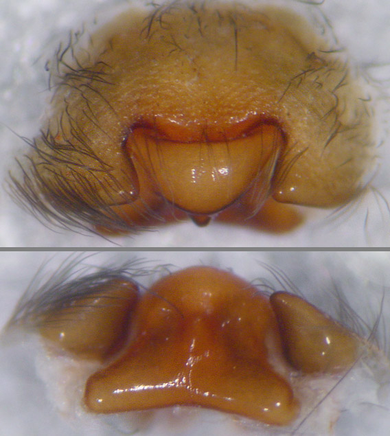 Amaurobius ferox, Epigyne dorsal und von den Spinnwarzen her gesehen.