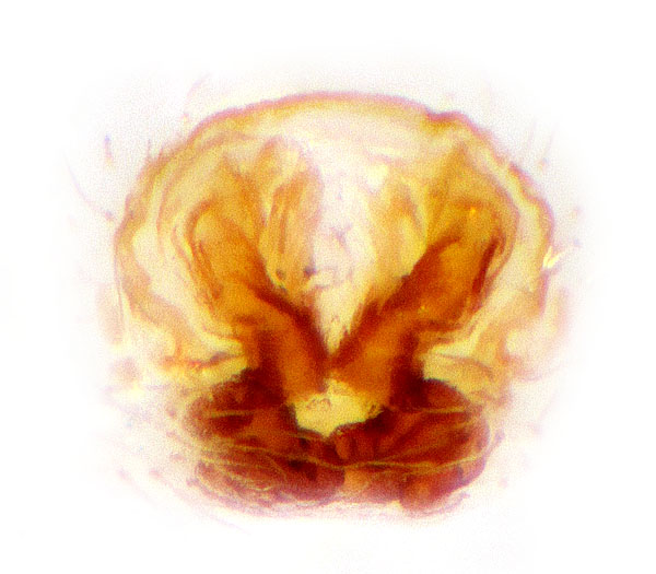 Ballus chalybeius; Epigyne; Tier 3 mm; Garten, Oberlausitz, Juli 2013; leg.& det. Michael Schäfer
