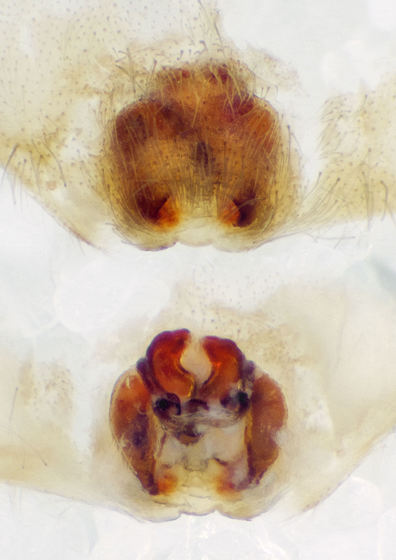 Clubiona lutescens, Epigyne (oben) und Vulva (unten)