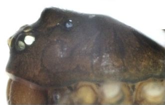 Oedothorax retusus, laterale Sicht des männlichen Prosomas.