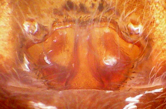 Pardosa pullata, Epigyne. Foto urheberrechtlich geschützt, Copyright Ari Kanelainen.