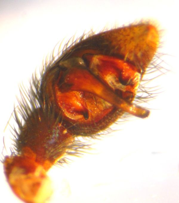 Pardosa riparia, Männchen, Pedipalpus. Tier von Grasdach in Kvålsseter, Norwegen auf gut 1000 m Höhe (18.08.2014).
