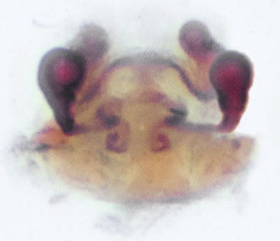 Pholcomma gibbum, Vulva, Foto urheberrechtlich geschützt. Copyright: Arno Grabolle (arno@spinnen-forum.de). Vor Fremdverwendung bitte nachfragen