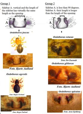Die nachfolgenden Bilder und Zeichnungen stammen von norwegischen Tieren. Zur Differenzierung von 5 Arten (Oedothorax agrestis, Oedothorax apicatus, Oedothorax fuscus, Oedothorax gibbosus, Oedothorax retusus) werden besondere Merkmale und Beschreibungen zu Unterschieden (in englisch) dargestellt.