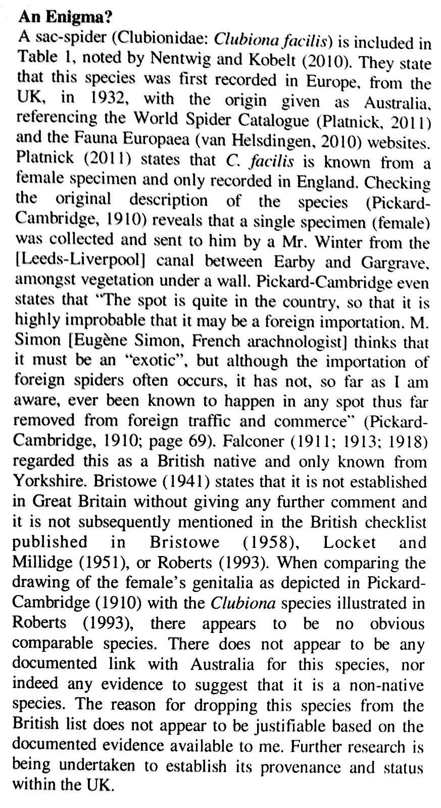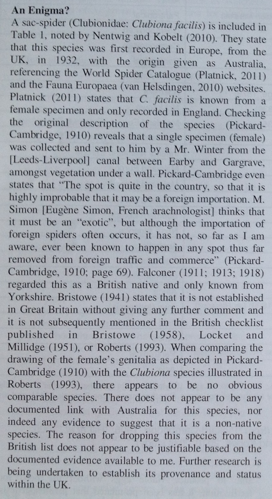 (''Clubiona facilis'' Cambridge, Diskussion durch Wilson) |