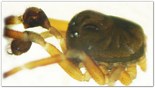 Typhochrestus digitatus, Prosoma des Männchens lateral. Tier 1,6 mm, aus Norwegen.