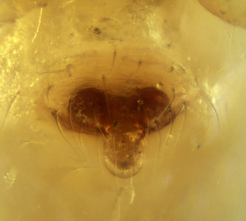 Birgerius microps, Epigyne. Tier 1,17 mm aus der Grotte de Sabrart (Frankreich), 12.10.2014.
